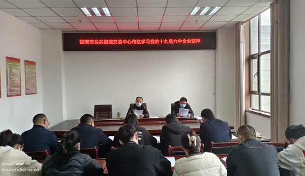 11月20日,市公共資源交易中心召開(kāi)黨員干部會(huì)議,傳達(dá)學(xué)習(xí)黨的十九屆六中全會(huì)精神,研究部署貫徹落實(shí)工作。黨組書(shū)記、主任張巍主持會(huì)議并講話。