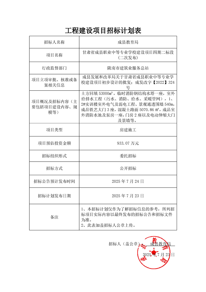 附件:招標(biāo)計(jì)劃表—甘肅省成縣職業(yè)中等專業(yè)學(xué)校建設(shè)項(xiàng)目四期二標(biāo)段.pdf