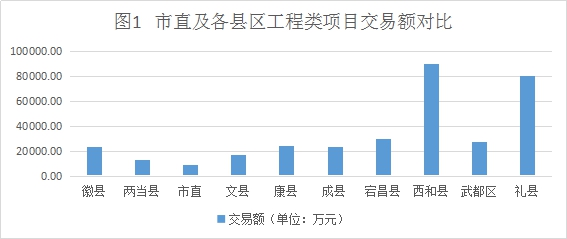 1.工程類(lèi)項(xiàng)目:市直6項(xiàng),交易額8655.19萬(wàn)元;武都區(qū)29項(xiàng),交易額27254.23萬(wàn)元;成縣24項(xiàng),交易額23254.25 萬(wàn)元;徽縣26項(xiàng),交易額23476.37萬(wàn)元;西和縣70項(xiàng),交易額90305.24萬(wàn)元;禮縣41項(xiàng),交易額80922.67萬(wàn)元;康縣29項(xiàng),交易額24450.87萬(wàn)元;文縣17項(xiàng),交易額17048.62萬(wàn)元;宕昌縣34項(xiàng),交易額30189.76萬(wàn)元;兩當(dāng)縣7項(xiàng),交易額13081.40萬(wàn)元。