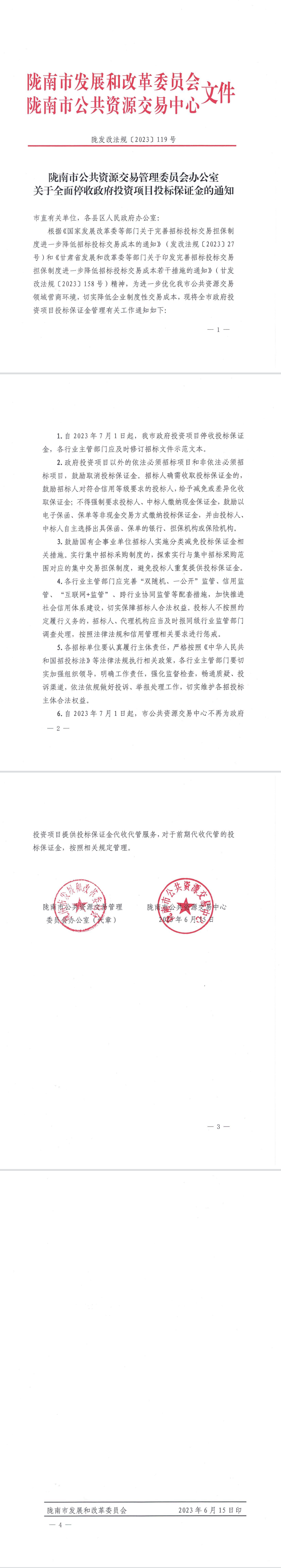 關(guān)于全面停收政府投資項目投標(biāo)保證金的通知